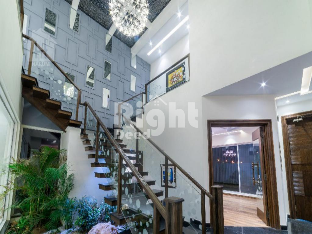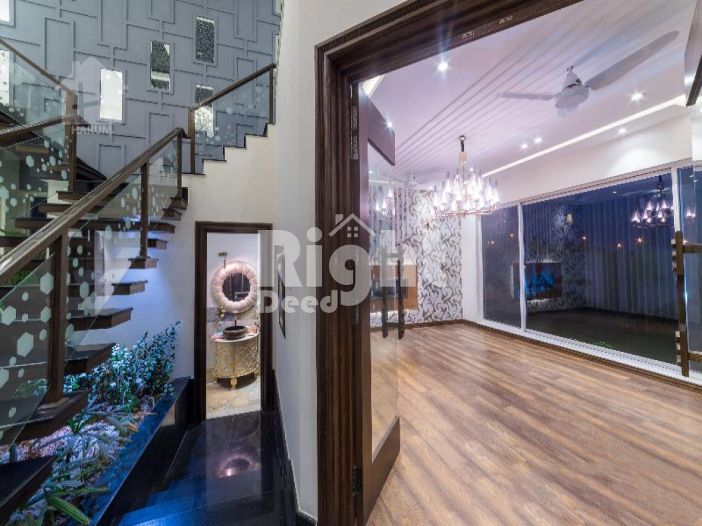 The House includes 5 beds, study room, S/Q, branded kitchen, tiles+wooden flooring, walls & ceiling, spacious car porch, lush green lawn.